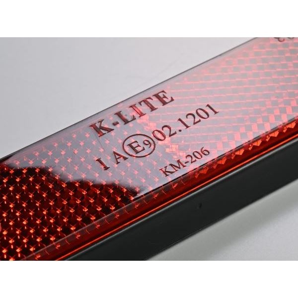 Eマーク取得済のリフレクター。オーバル形状のラウンドコーナータイプ。リフレクター面積10cm²を確保し車検にも安心です。