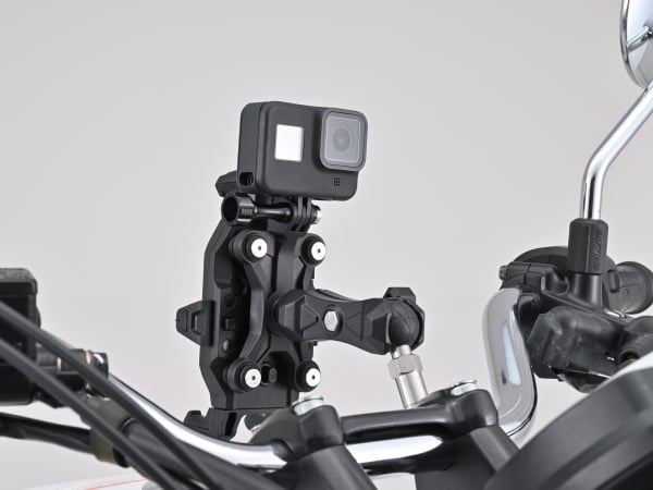 別売の固定用つまみボルト&ナットを使用することでアクションカメラなどの装置が可能。