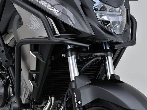 ・大きく張り出さず目立ちにくい・アドベンチャースタイルを強調するアッパー形状のエンジンガード。・立ちゴケ等の軽度な転倒に対し、エンジンやタンク回りのダメージを軽減。・付属の樹脂パッドは軽度なダメージを吸収し、摩耗時には交換可能です。・骨格のパイプはアメリカンのハンドルと同径のφ25.4なので、アクションカメラなどハンドルにクランプする用品の装着も可能。・スチールパイプ製。ボルトオン装着可能。・樹脂パッド(リダクションスライダー付属)。