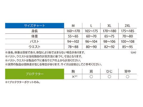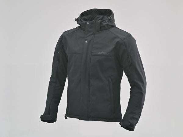 防風性能とストレッチ性能に優れたソフトシェル素材を使用したシンプルなパーカーデザイン。裏地はメッシュを採用し、腕と脇下にベンチレーションを設置。長い季節を通して着用可能。脱着インナーや中綿は使用せず、着回しやすさを重視。冬場はインナーの重ね着ができるように、若干オーバーサイズ設定。フードは脱着が可能。肩・ひじ・背中はプロテクターを装備。胸はプロテクターポケットのみ。別売のSAS-TECへアップグレード可能。