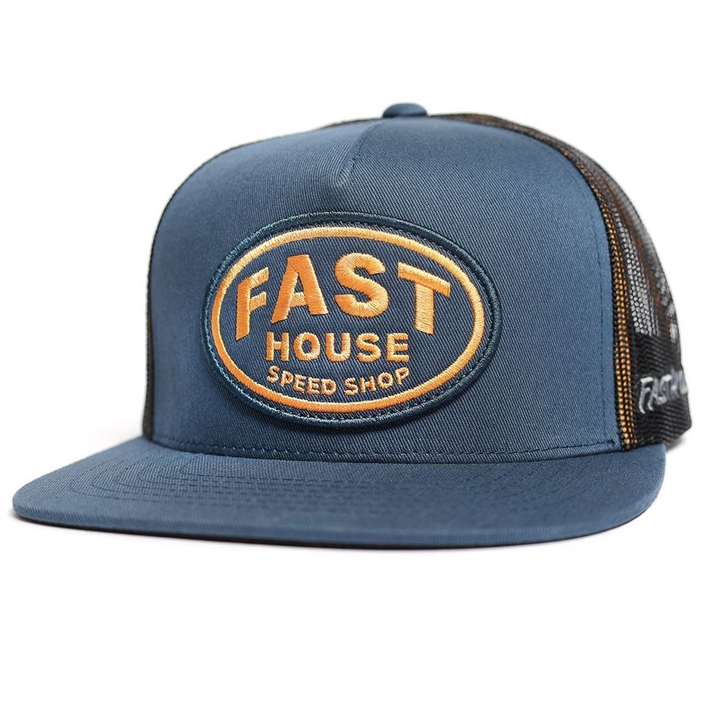 ファストハウスのオリジナルデザインをあしらったスナップバックトラッカーハット。