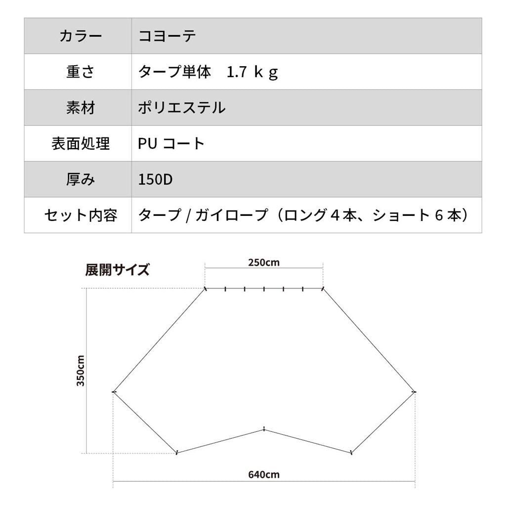 セット内容:タープ、ガイロープ(ロング4本/ショート6本)