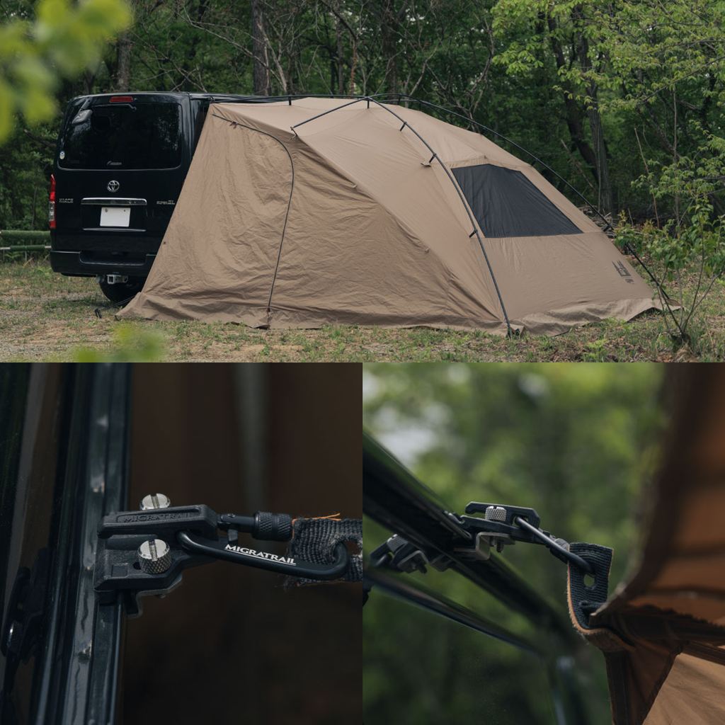 車の横にタープを設置するためのカージョイントフック。
