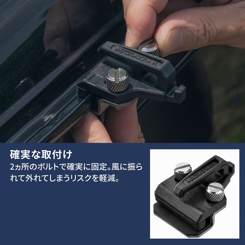 レインモール(雨どい)に固定することで簡単かつ確実に装着可能。