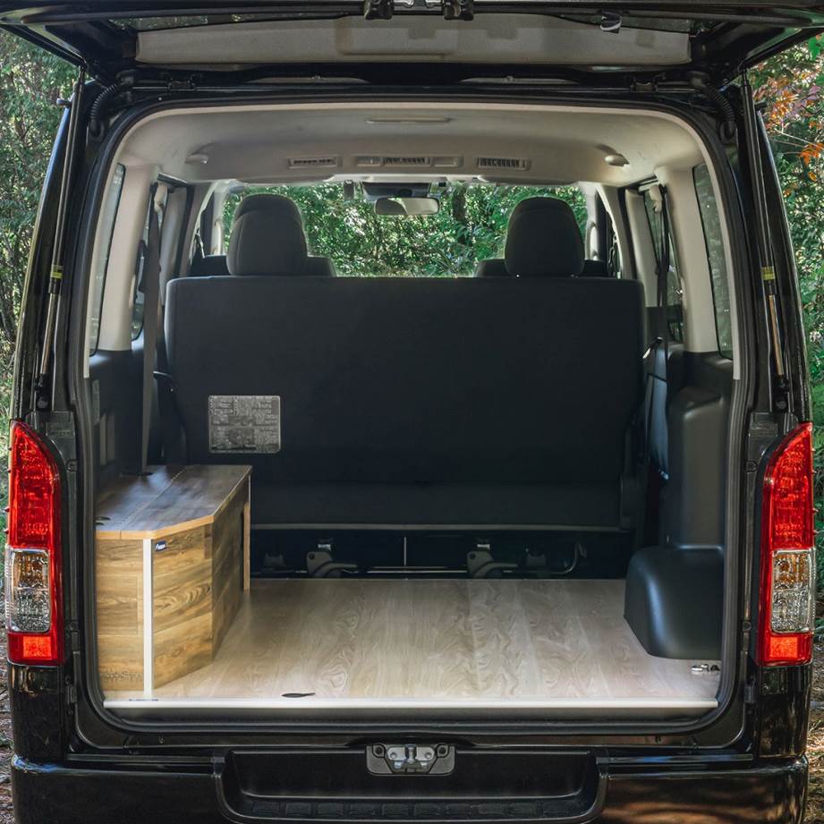乱雑になりがちな旅の道具を整頓し、快適に過ごす整った車内空間。