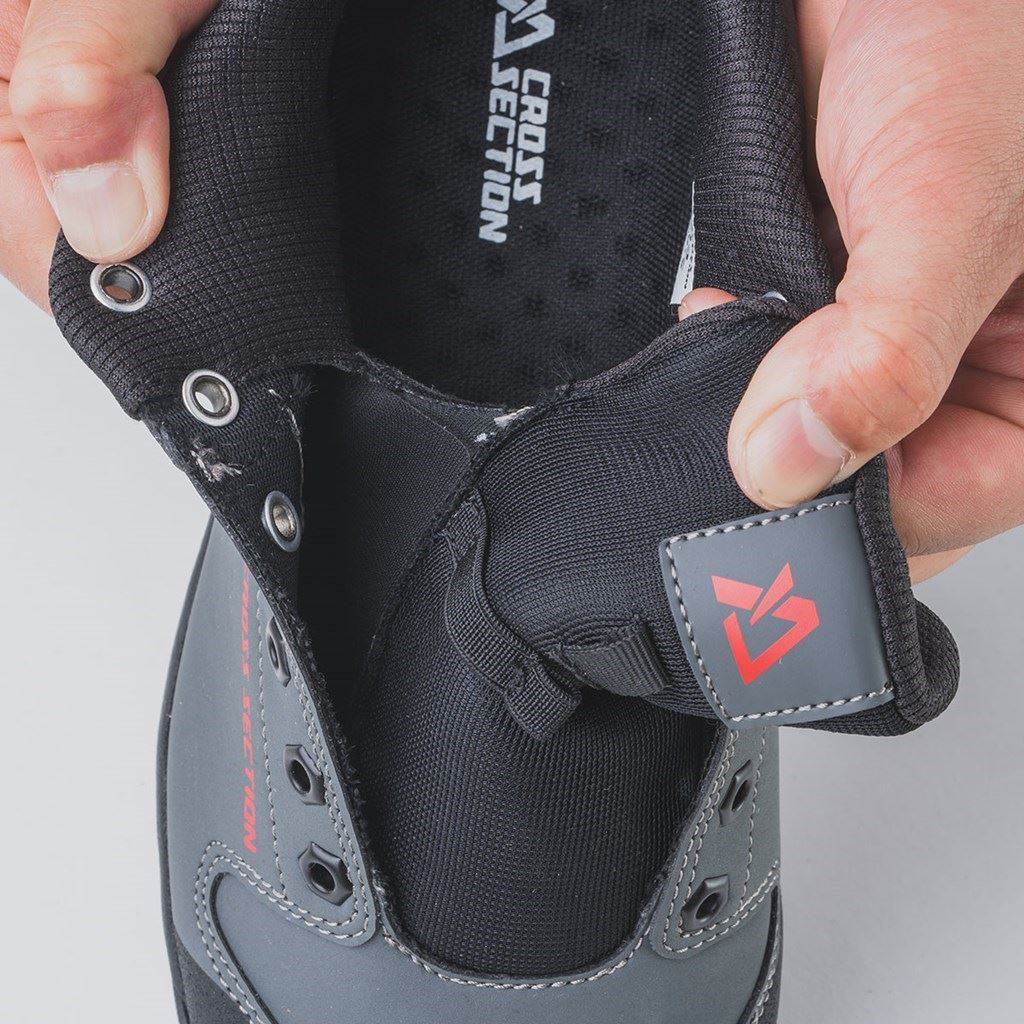 深めのヒールカップを採用することで踵の浮き上がりを抑え、よりライディングに集中することが可能。