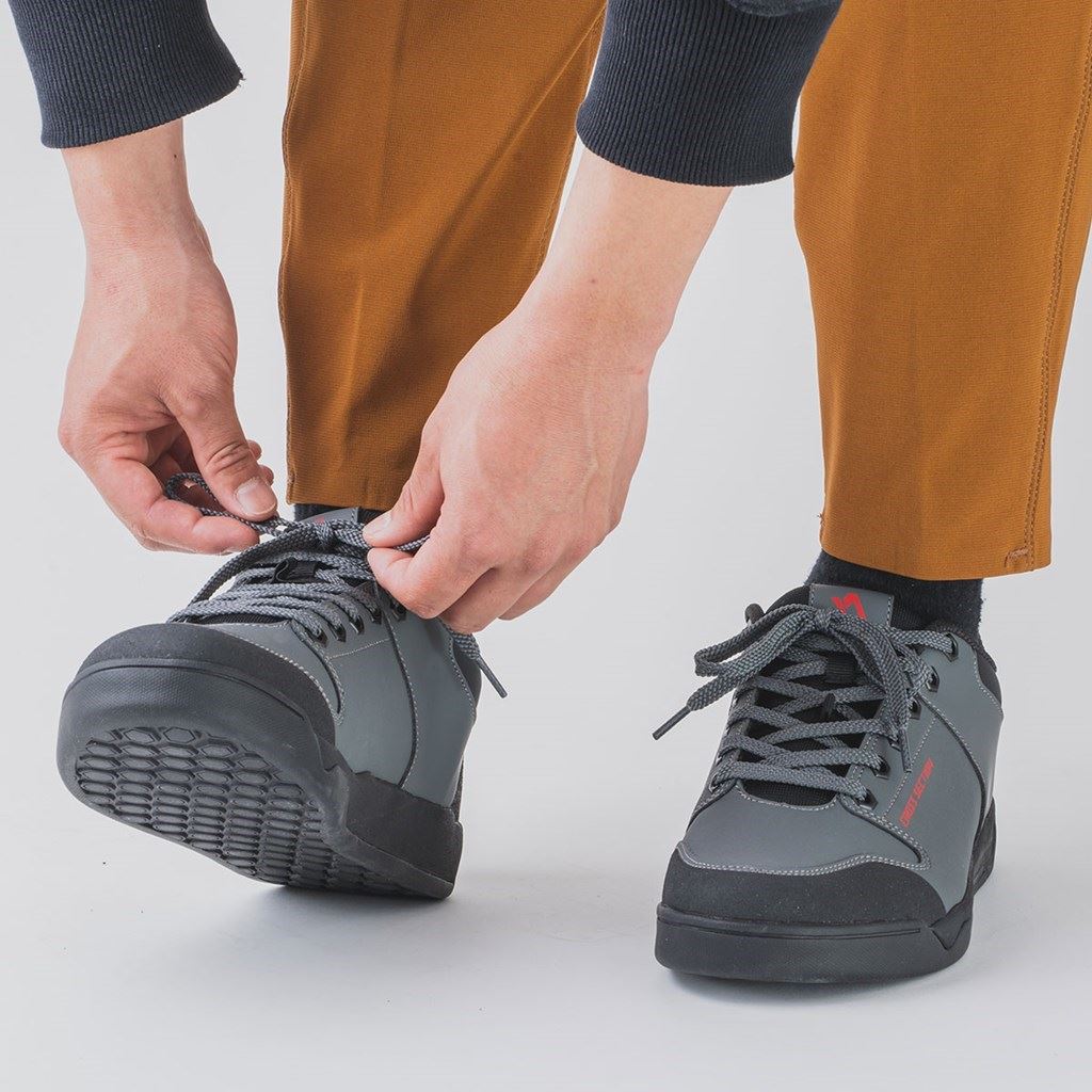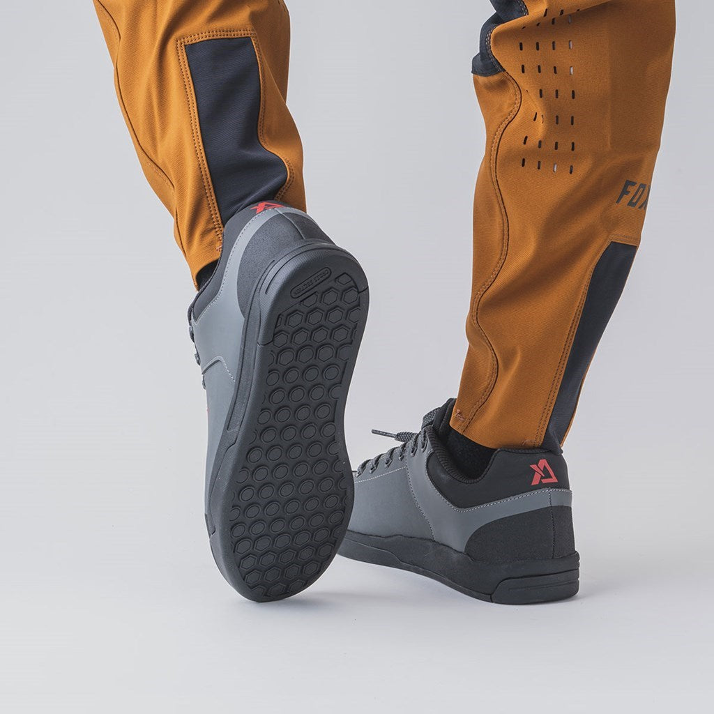 フラットペダルでのライドに注力し、ドライからウェットまで安定したグリップ発揮するFLEX RUBBERソールを採用。