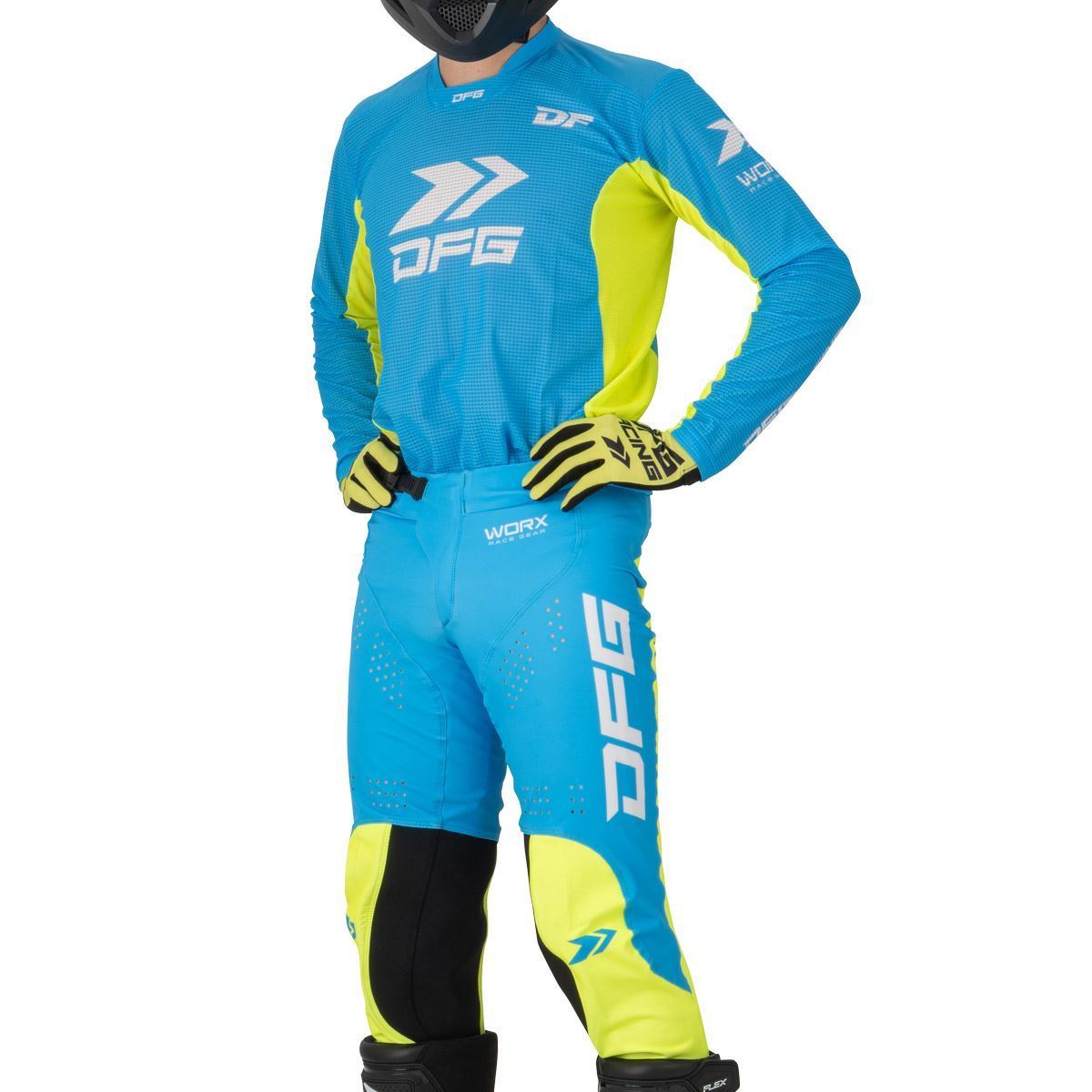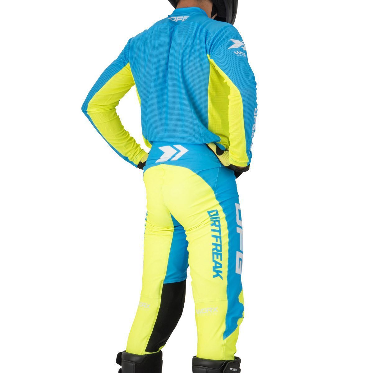 【ダートフリーク ワークスジャージ チャンプ ブルー/ フローイエロー バイク 軽量ストレッチメッシュ素材 アタックポジション 】