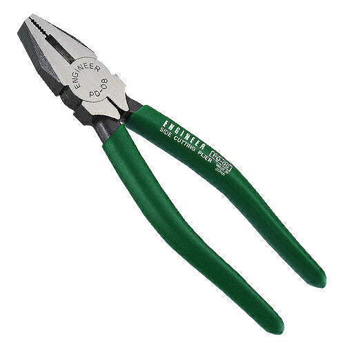 【エンジニア PD-08 電工ペンチ 200mm サイズ:53X210X15mm 材質:S58C 刃部硬度:HRC60±4 切断能力:鉄線φ3.2】