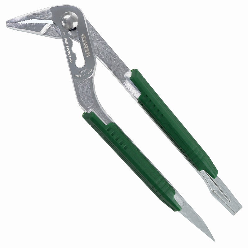 ●プライヤー先端の両アゴ部が独自のアイソセレス(二等辺三角形)構造でネジを真上から均等に保持できます。(PAT.)