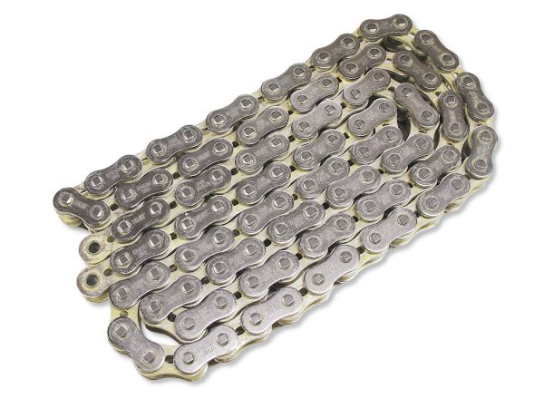 ■商品説明 エンジンで発生するパワーを無駄なくリアタイヤへ伝達する重要保安部品であるドライブチェーン。 応力解析を行い、プレートの応力の低い部分にホールを設け、強度を落とすことなく、軽量化を実現。 強度、耐久性はそのままに摩擦の軽減、メンテナンス性に優れるOリング式を採用し長期に渡り安心してご使用頂けます。 仕様 シルバー(スチール)タイプ。 630の全てのZ系に対応可能な100Lでのデリバリー。 ※カシメチェーンジョイント付属 カラー:シルバー
