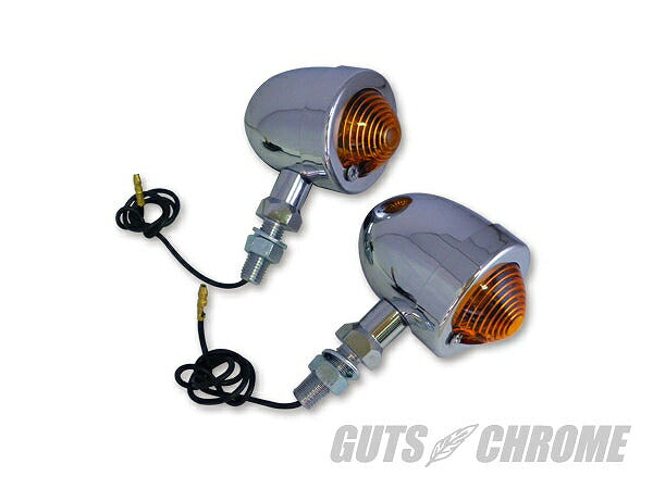 スモール バレットウィンカーSET 本体51φx73mmボルト径:長さ25mmx10φ シングル球 2コセットになります。●メーカー:GUTS CHROME●OEM品番 :-●Made in TAIWAN