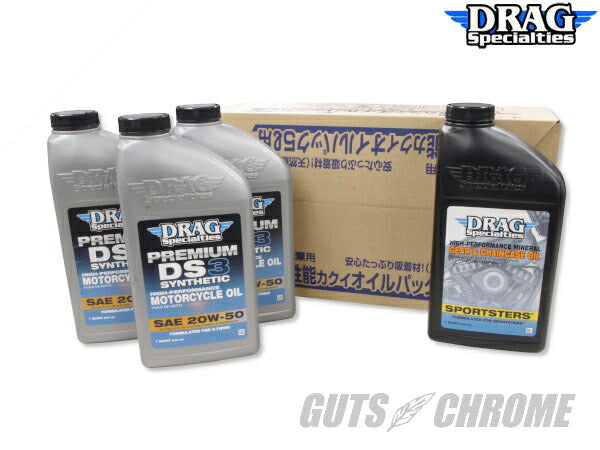 【ガッツクローム 8600-0067 ドラッグスペシャリティーズ オイル交換フルセット 100%化学合成 20W50 シルバーエンジンオイル エボ スポーツスター】