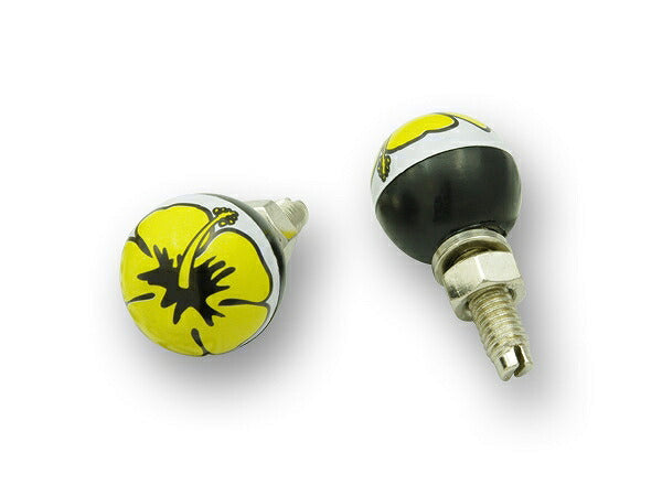 ハイビスカスをプリントした球のついたライセンスボルトです。