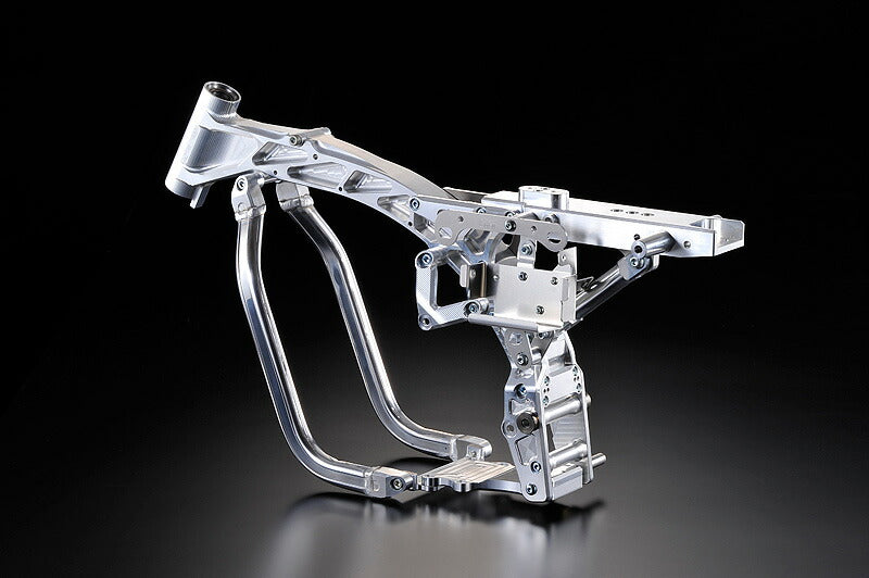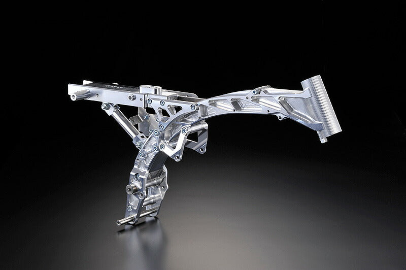 ●ヘッドパイプ一体削り等、フレーム部品は溶接なしの全てボルトでの組み立て式になっています。