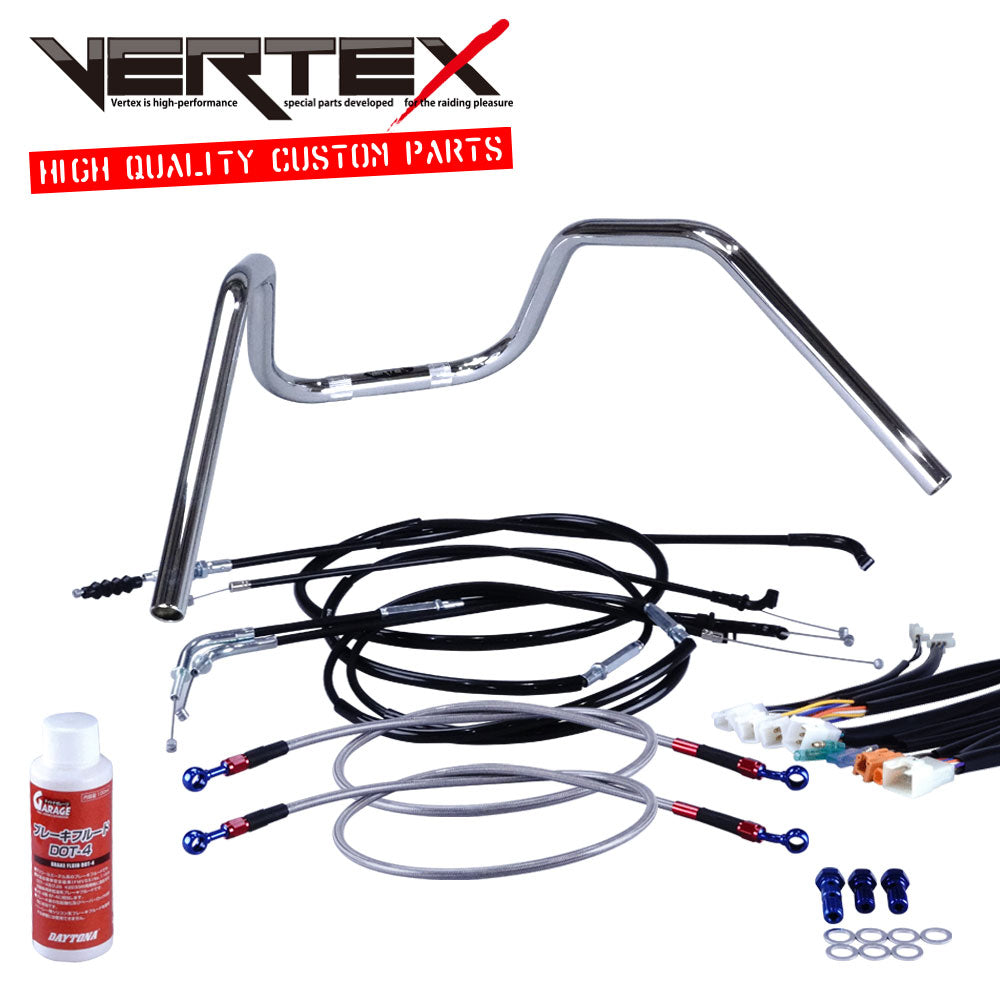 【XR50/100モタード アップハンドル セット アップハン BK ミニ6ベント アップハン メッシュブレーキホース バーテックス XR50/100モタード アップハンドル】
