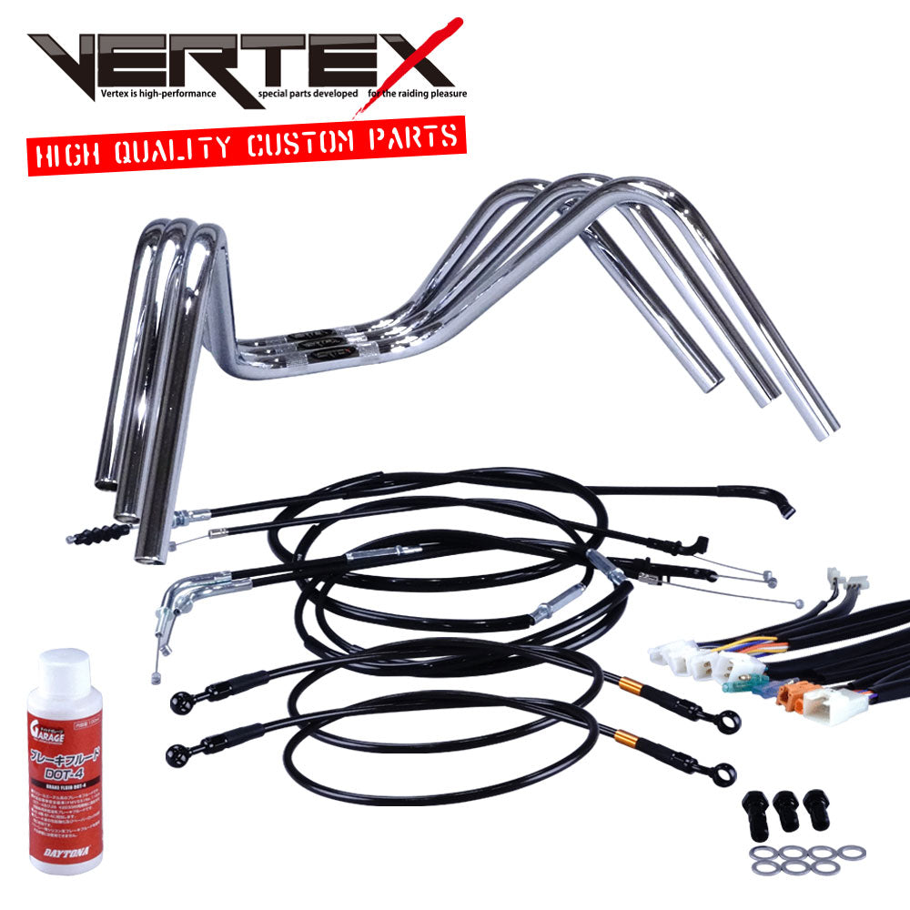【XR50/100モタード しぼりアップハンドル セット 絞りアップハン ワイヤー ミニシボリ ハンドル 05-07年 AD14HD13 バーテックス】