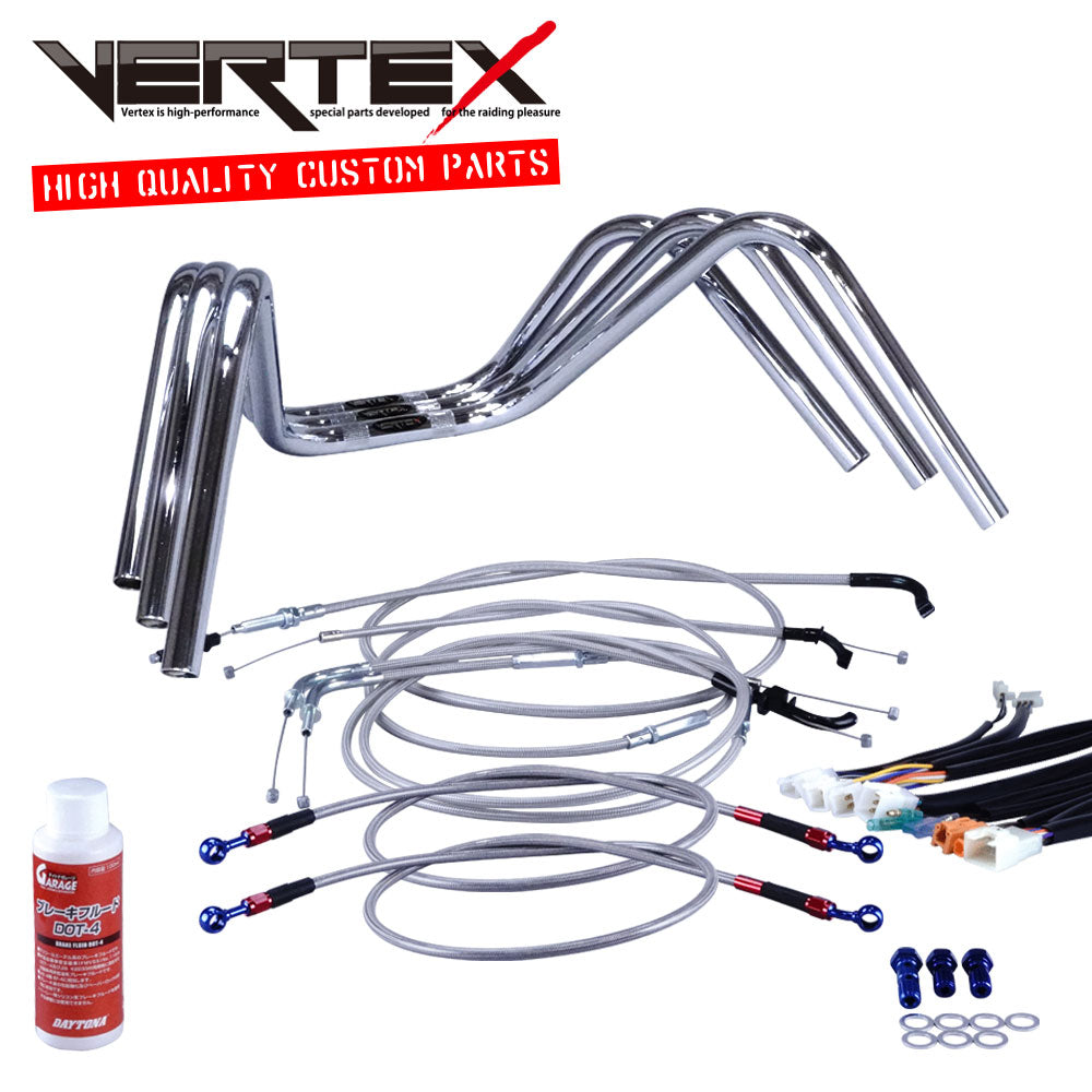 【XR50/100モタード しぼりアップハンドル セット 絞りアップハン ワイヤー ミニシボリ ハンドル 05-07年 AD14HD13 バーテックス】