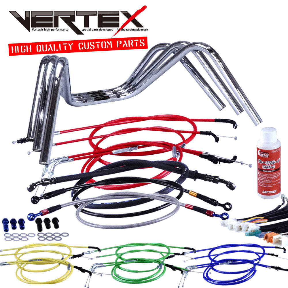 XR50/100モタード しぼりアップハンドル セット 絞りアップハン ワイヤー ミニシボリ ハンドル 05-07年 AD14HD13 バーテックス