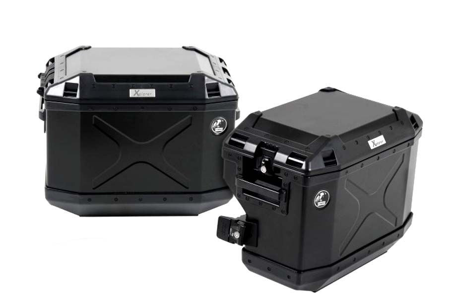 エクスプローラーカットアウトは、右側サイレンサー部分との干渉を逃がしながら左右対称幅となるようカットアウトを施したエクスプローラーサイドボックスとサイドケースキャリアをセットにした特別モデル。