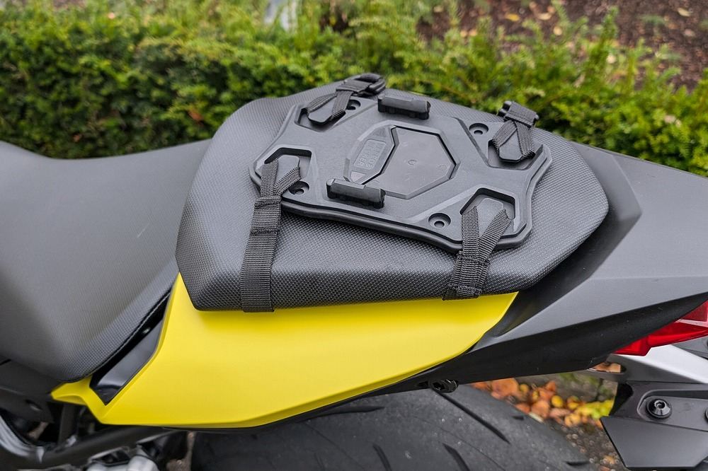 タンデムシートにリアバッグを取り付けられるアタッチメント。