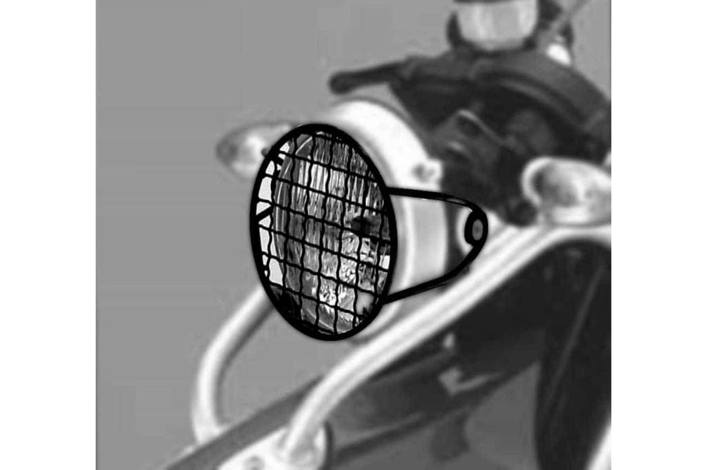 悪路での不意のアクシデント、木々等との接触等の際のヘッドライトレンズを損傷から保護する鉄製のライトグリルです。