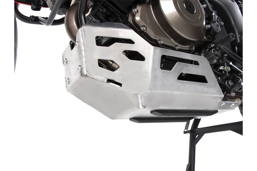 前輪が巻き上げた小石や泥からエンジンを保護する効果のあるアルミプレート。