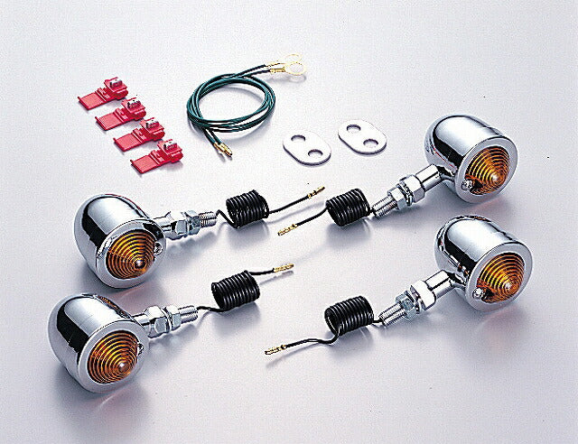 ブレットウインカーキット オレンジレンズ ステム取付用ステー付、シングル球 6V10W 4ヶ入 ジャズ