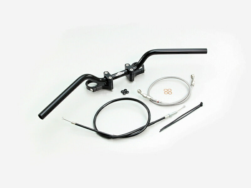 ハンドルのスイッチ穴加工済み ロングクラッチケーブル_ステンレス製ブレーキホース組込_ポジション40mmUP・50mmBACK