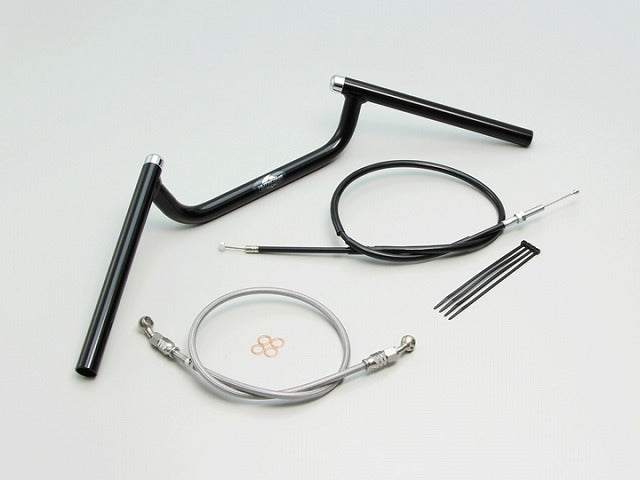 ハンドルのスイッチ穴加工済み_オリジナル・フルステンレス製ブレーキホース、クラッチケーブル組込_ポジション30mmUP・40mmBACK