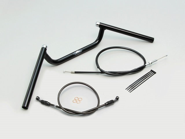 ハンドルのスイッチ穴加工済み_オリジナル・フルステンレス製ブレーキホース、クラッチケーブル組込_ポジション30mmUP・40mmBACK