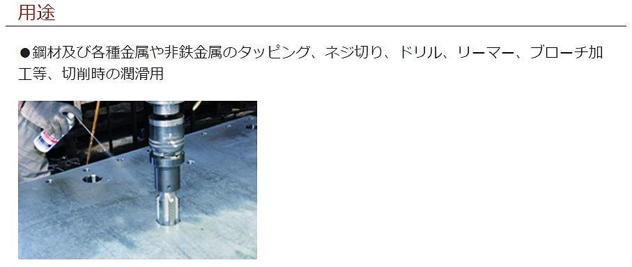 鋼材及び各種金属や非鉄金属のタッピング、ネジ切り、ドリル、リーマー、ブローチ加工等、切削時の潤滑用