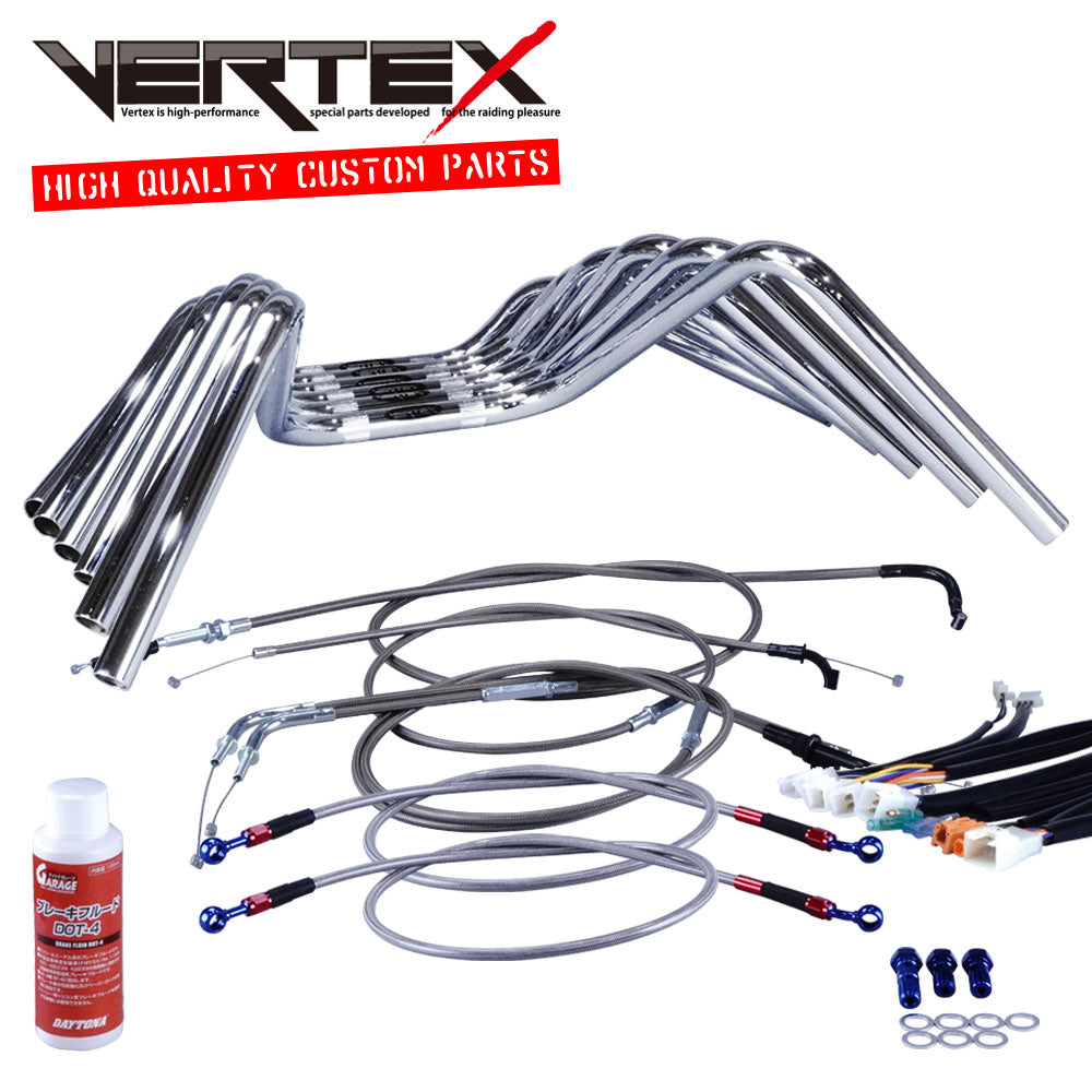 ZRX400/2 セミしぼりアップハンドル セット 絞りアップハン ワイヤー シボリ ハンドル 04-06年 ZR400E バーテックス