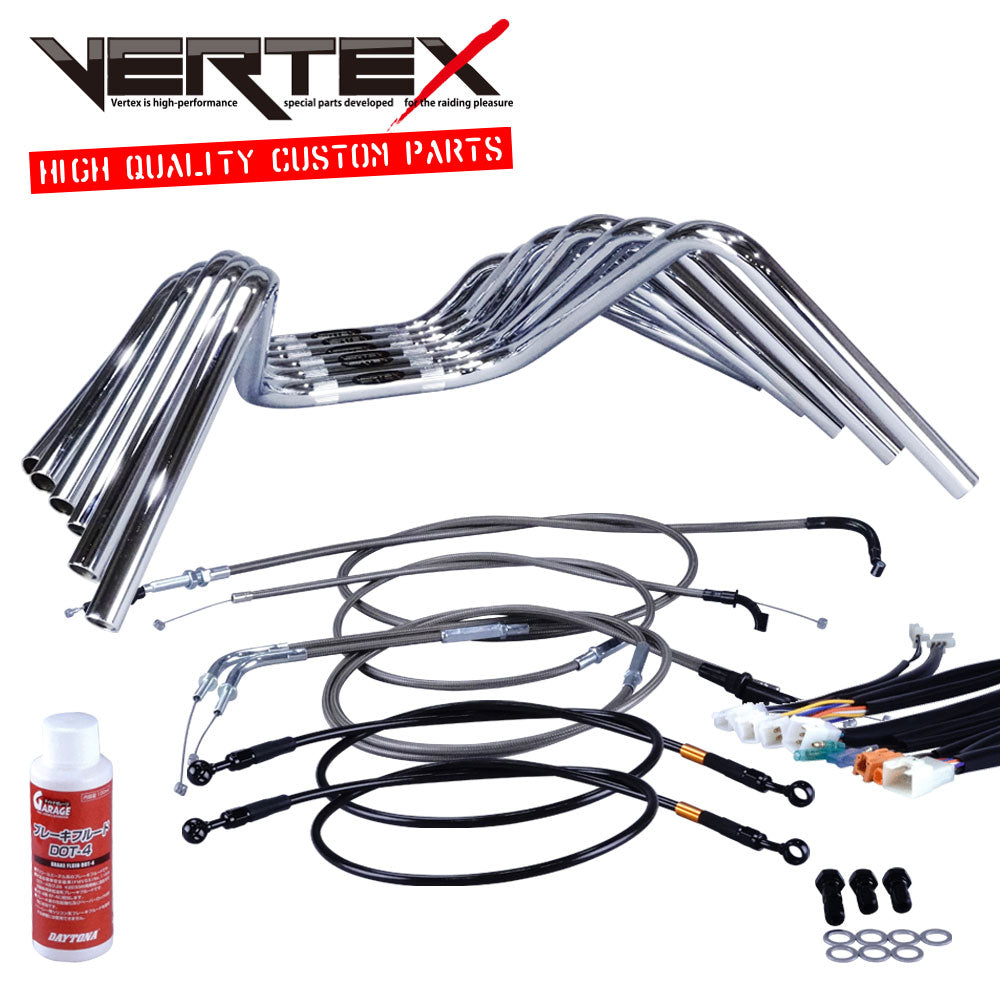 【ZRX400/2 セミしぼりアップハンドル セット 絞りアップハン ワイヤー シボリ ハンドル 04-06年 ZR400E バーテックス】