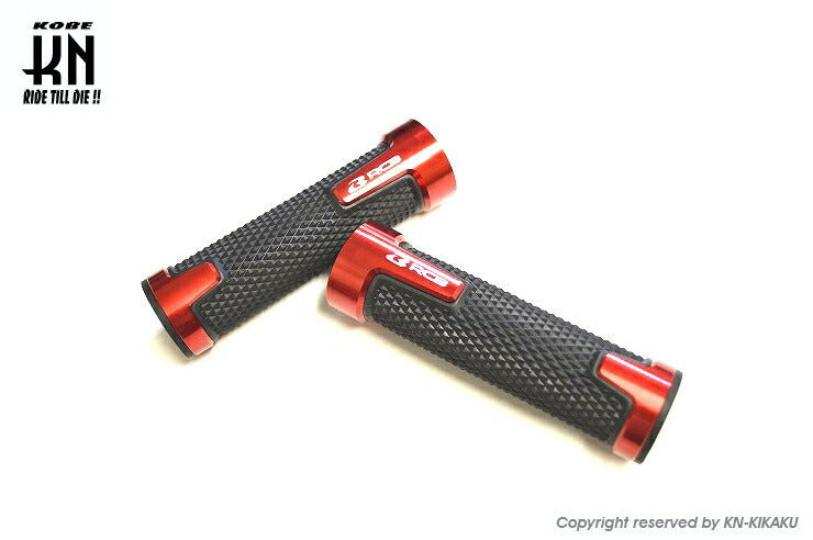 【KN企画 01HG014R RCB アルミハンドルグリップ AHG14 レッド 汎用 22.2mmハンドルバー用】
