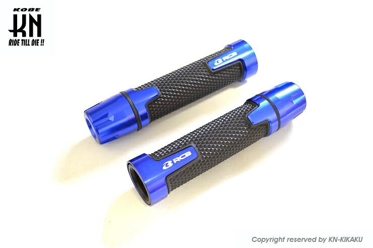 【KN企画 01HG016A RCB バーエンド付き アルミハンドルグリップ AHG16 ブルー 汎用 22.2mmハンドルバー用】