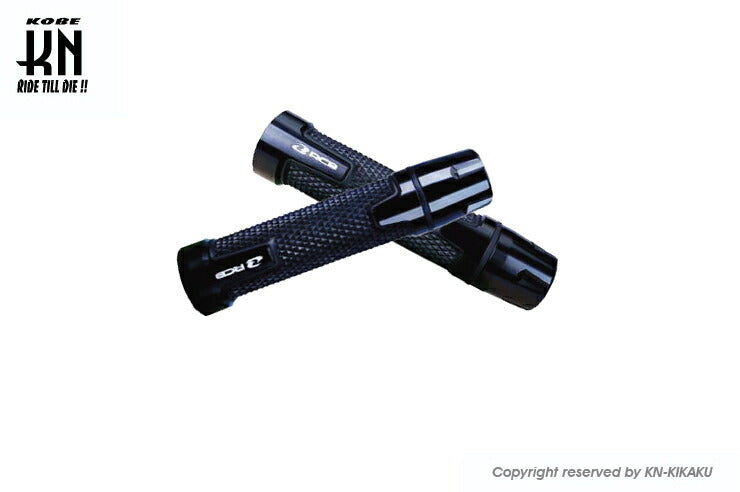 【KN企画 01HG016B RCB バーエンド付き アルミハンドルグリップ AHG16 ブラック 汎用 22.2mmハンドルバー用】