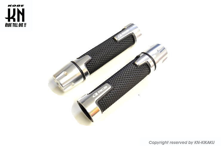 【KN企画 01HG016S RCB バーエンド付き アルミハンドルグリップ AHG16 シルバー 汎用 22.2mmハンドルバー用】