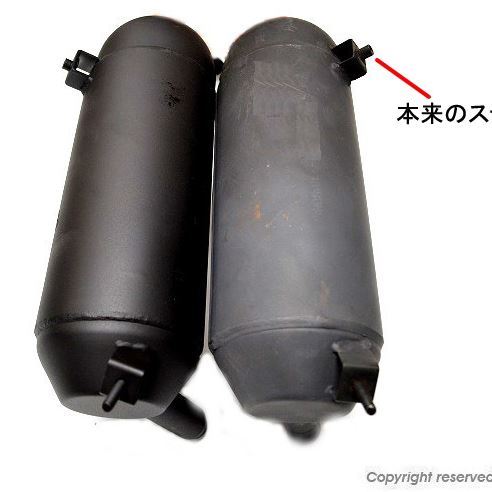 マフラープロテクターの取り付けステーが逆になっており、プロテクターが装着できないマフラーです。