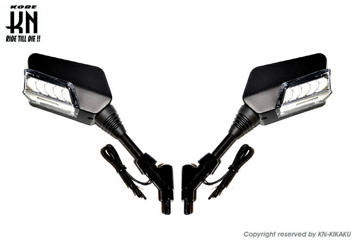 【KN企画 BMSK-BLW10Y シーケンシャルウインカー付バックミラー 左10mm正/右10mm逆ネジ デイライトホワイト ヤマハスクーター】