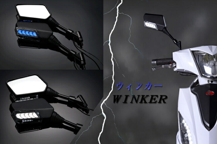 シーケンシャルウインカー付バックミラー 左10mm正/右10mm逆ネジ デイライトホワイト ヤマハスクーター