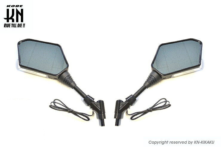 【KN企画 BMSK3-BLW10H シーケンシャルウインカー付バックミラー Eマーク付 左右10mm正ネジ デイライトホワイト ホンダ/スズキ/カワサキスクーター】