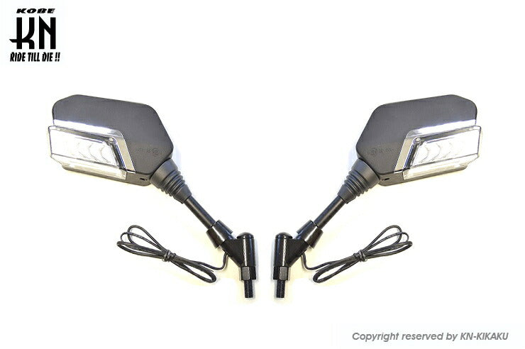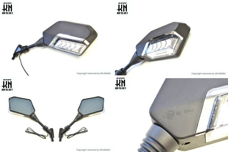 【KN企画 BMSK3-BLW10Y シーケンシャルウインカー付バックミラー Eマーク付 左10mm正/右10mm逆ネジ デイライトホワイト ヤマハスクーター】