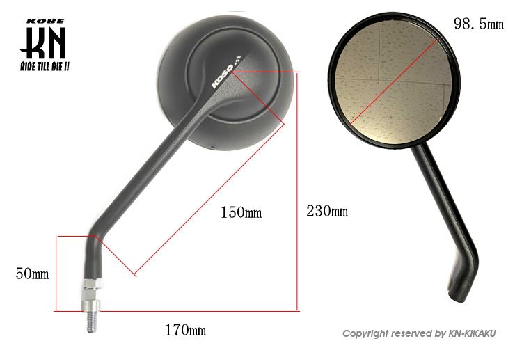 【KN企画 NXC125-BA17 KOSOバックミラー ラウンドビューミラー クリアーレンズ ブラック ネジ径 8/10mm 左右セット バイク】