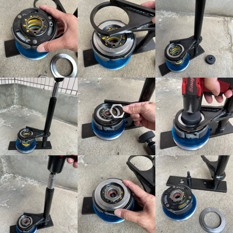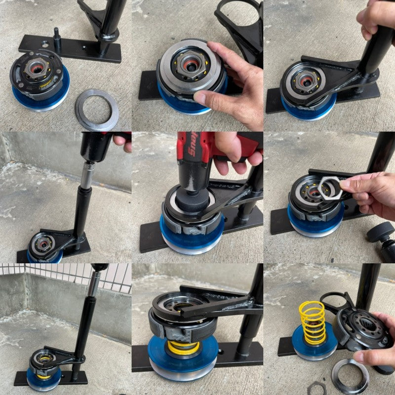 ・完全にセカンダリーを挟み、本体をスライドさせて上下に動かし、安全にセンタースプリングの脱着が可能。ネジ山もなめません。