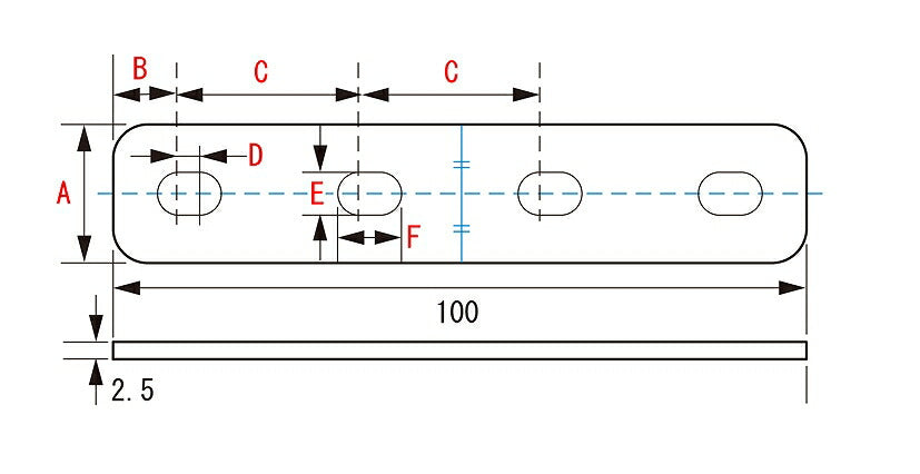 【アウトレット】ユニバーサルステー SUS304 φ8 ストレート 100MM 2.5T