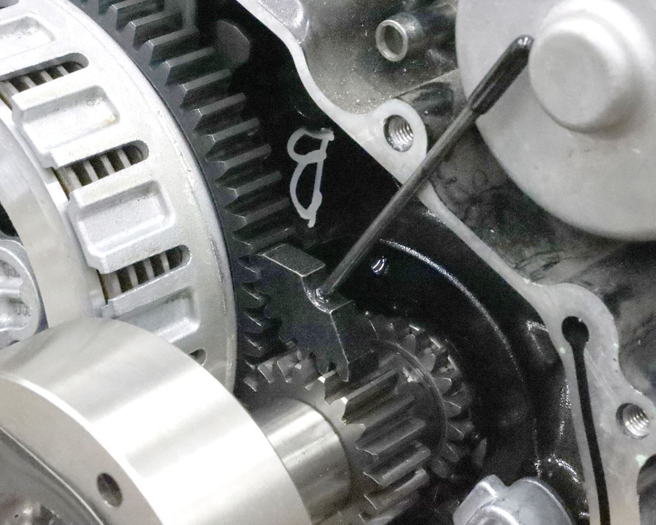 プライマリードライブやギヤやクラッチアウターの脱着時の回り止め用工具です。ギヤ同士の噛み合わせに割り込ます事で、ギヤを固定します。