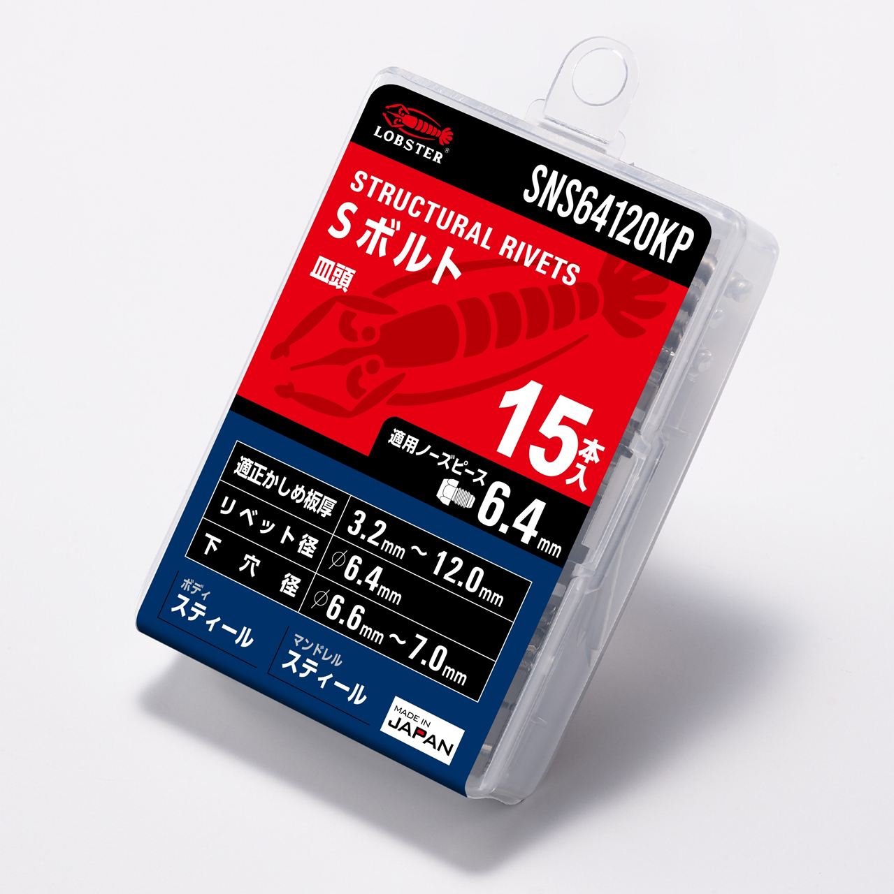 【ロブテックス SNS64120KP Sボルト/エコパック15 15本 エビ Sボルト 皿頭 スティールボディ スティールマンドレル 高強度ブラインドリベット Φ6.4】
