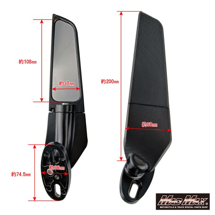 【マッドマックス MM04-0007-01 アルミ製 カウリングミラー Sサイズ 汎用 左右セット バイク 鏡】