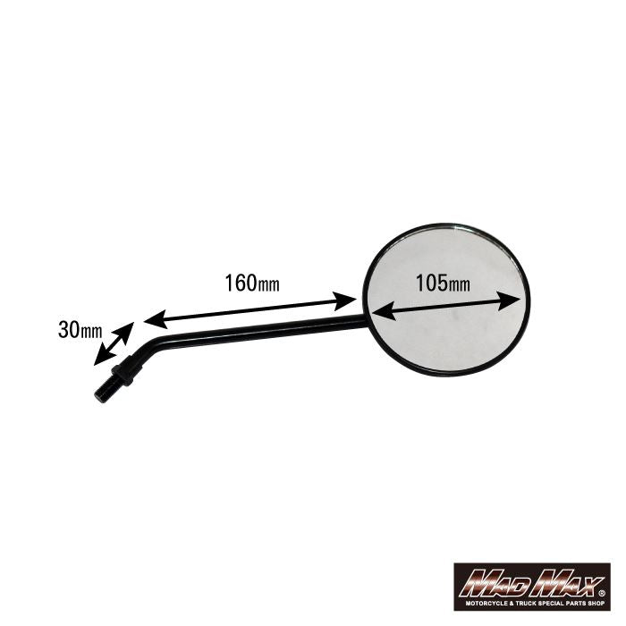 【マッドマックス MM04-0010-1BK 丸形ミラー 10mm ブラック 左右共通 汎用 1本入り バイク 鏡】
